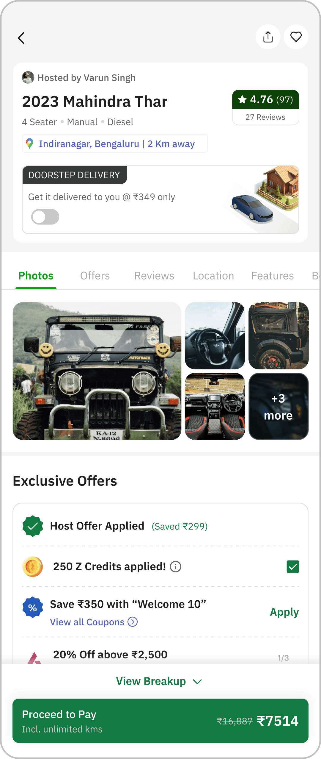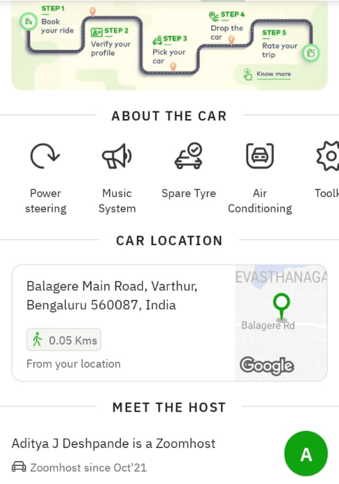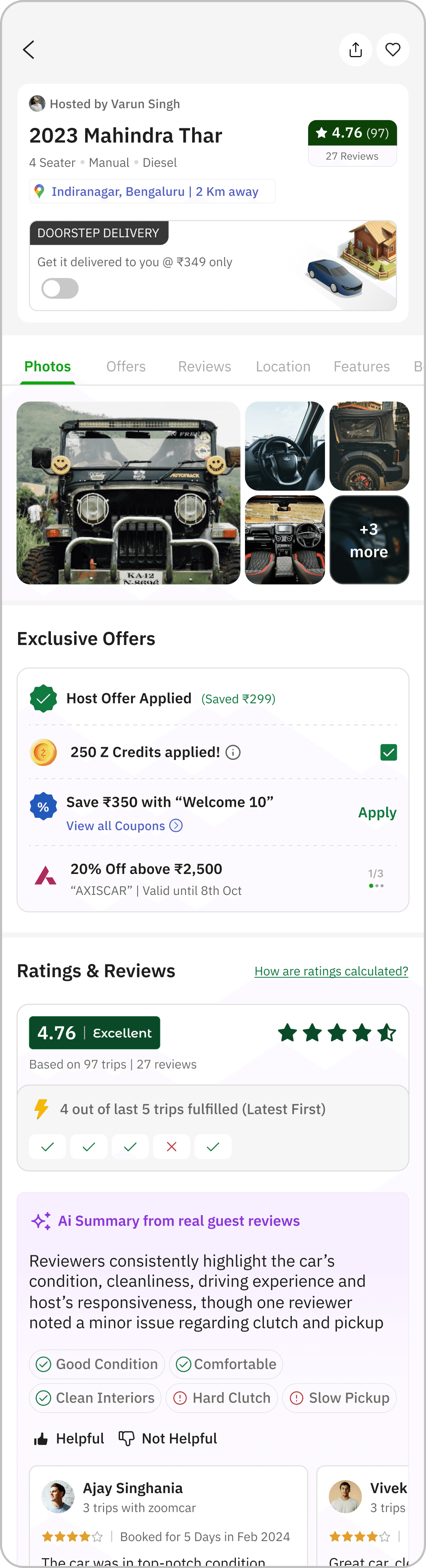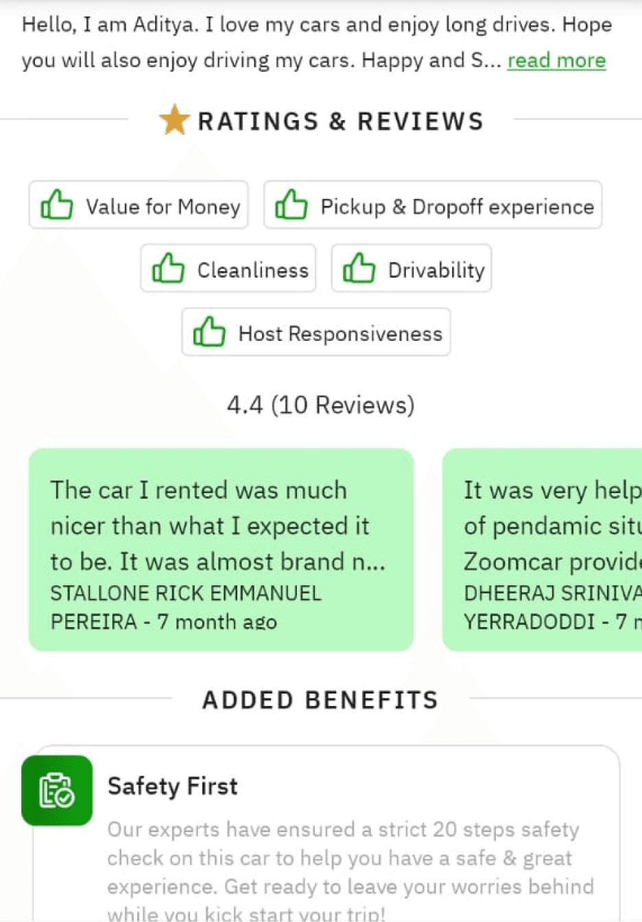 Builds instant trust and clarity upfront through ratings, host, and key car specs