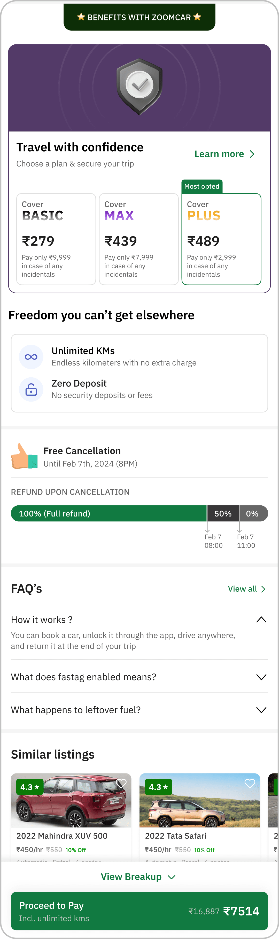 Transparent Zoomcar Benefits & Cancellation Policies