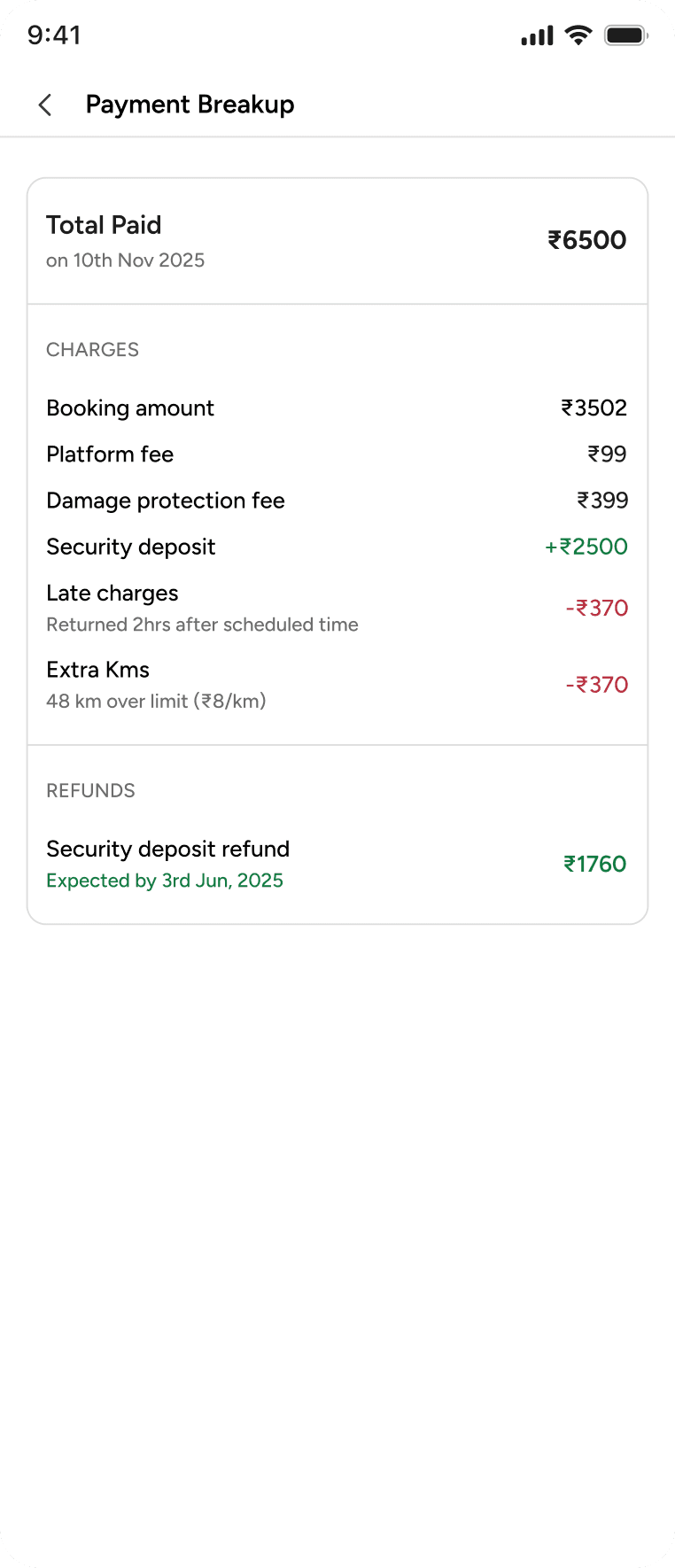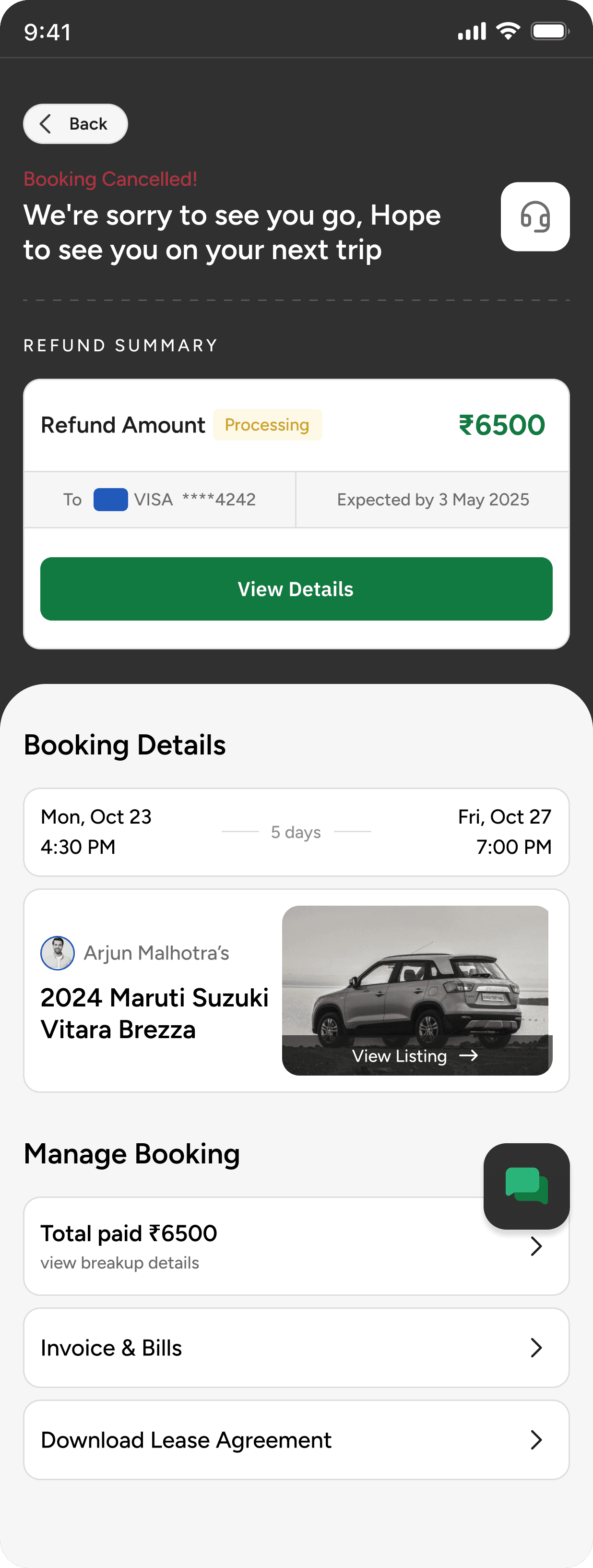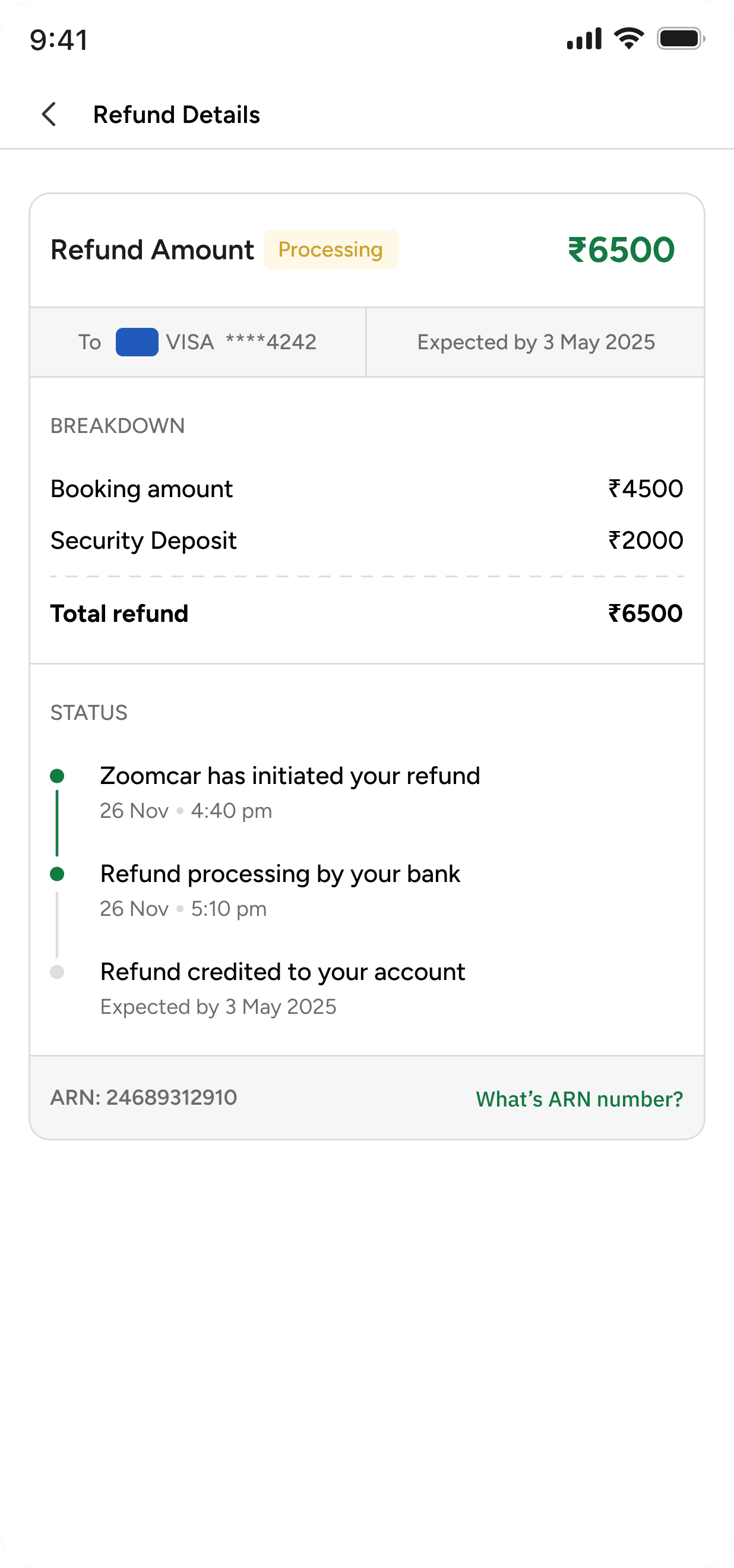 When a booking is cancelled, We show the refund amount upfront with a clear breakdown, timeline, and payment destination. The page shifts from trip management to closure, keeping only the essential information visible.