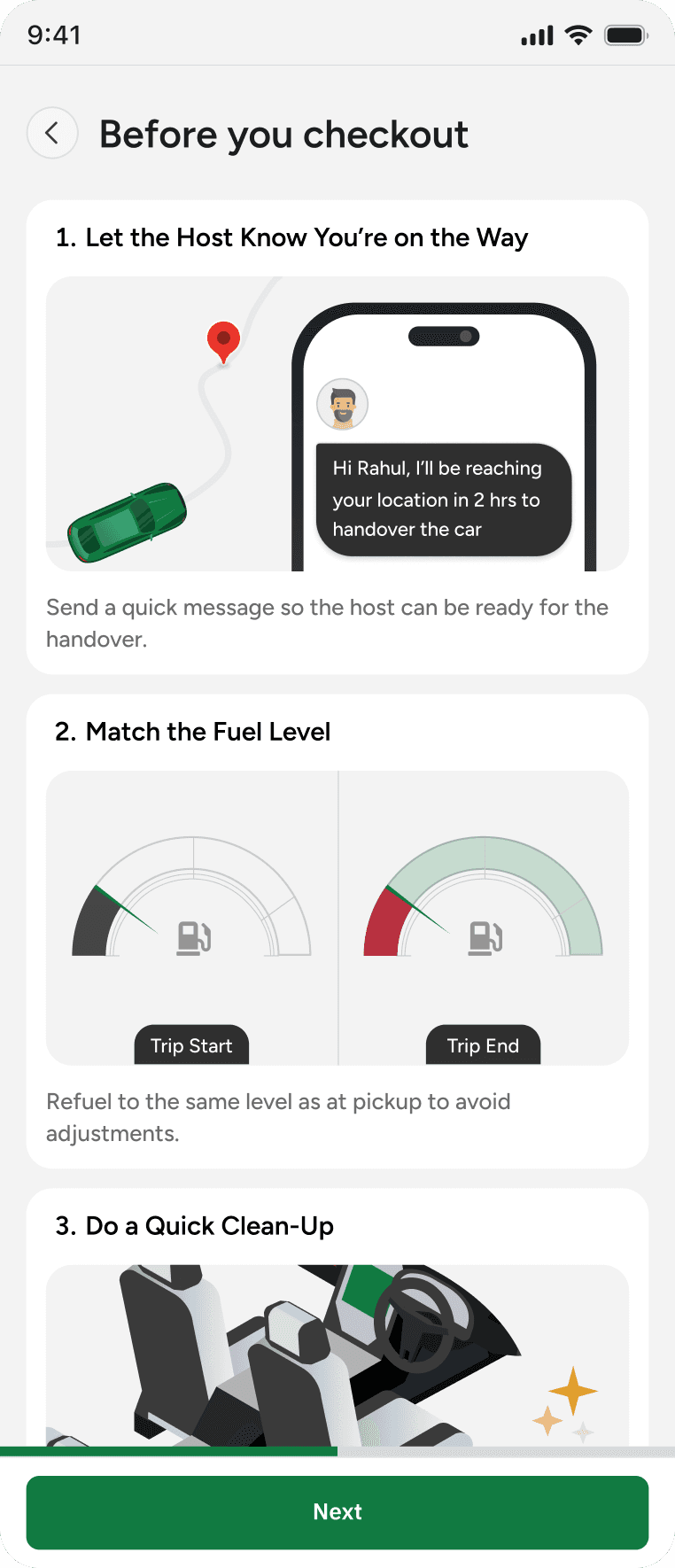 This project is currently under development. I'll update this section with metrics and impact once we get some data when the redesign goes live. Early internal user testing has been promising, validating our key design decisions around the pre-trip checklist, refund transparency, and car unavailability flow etc... The feedback gave us confidence to move forward with implementation.
