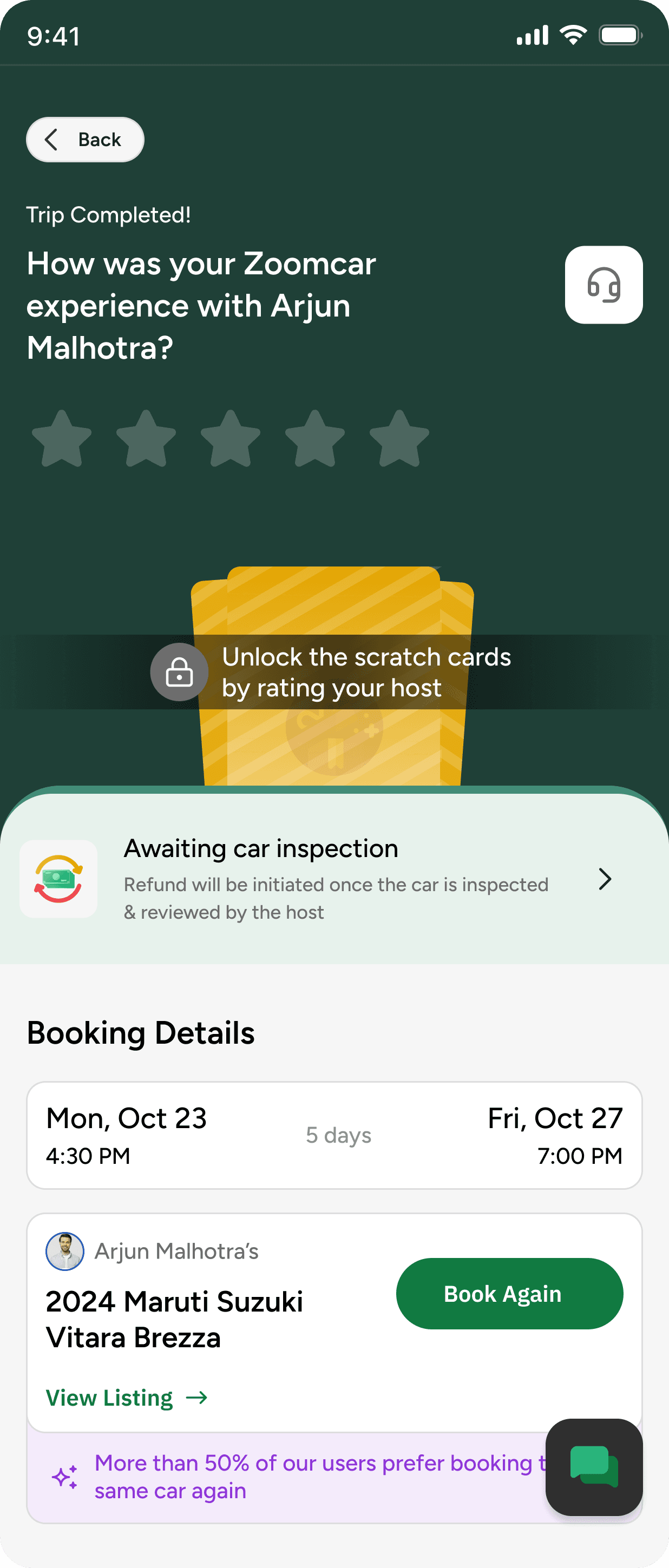 After the trip ends, collecting feedback is critical. We linked scratch card rewards to trip-end feedback, users unlock rewards only after submitting feedback, improving conversion. Once unlocked, rewards encourage users to make another booking, driving retention