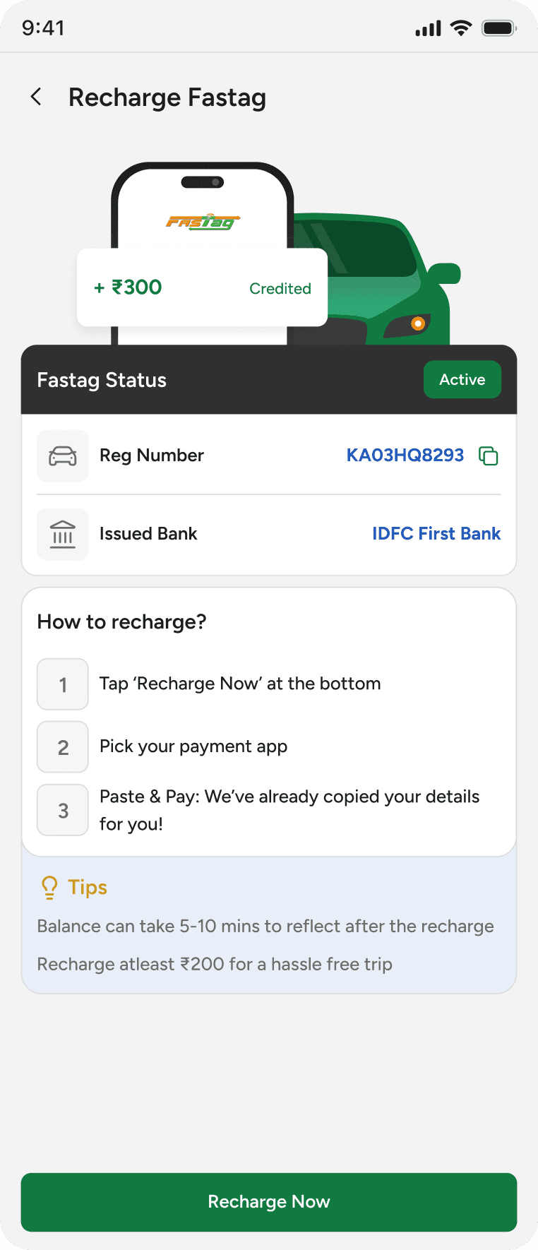 The post booking experience extends beyond the main page. These supporting screens, edu modules, payment details, FASTag tracking, and refund breakdowns etc.. surface at key moments to prevent confusion and aid users throughout the journey